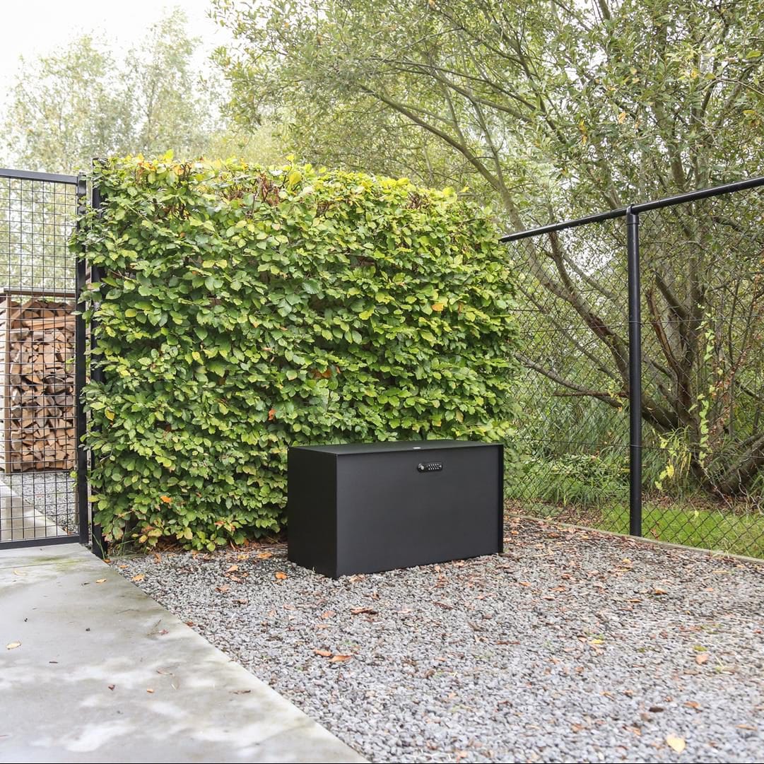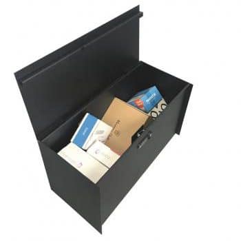 De pakketbus Bulkbox zwart van TuinExtra is gemaakt voor de ontvangst van pakketjes en goederen. U geeft de code op aan de leverancier bij bestelling en deze leverancier levert de goederen af in uw Bulkbox als u niet thuis bent. U kunt met deze Bulkbox pakketjes ontvangen met een maximale afmeting van 50 x 30 x 80 cm. Deze Bulkbox is uitermate geschikt voor bedrijven of particulieren met een bedrijf aan huis. Ook consumenten die regelmatig online bestellen hebben veen plezier van deze pakketbus. De brievenbus is gemaakt van 3 mm dik aluminium. De standaard kleur is matzwart ral 9005. De bus is 52 cm hoog, 90 cm breed en 42 cm diep. Aan de onderzijde zit een gat voor eenvoudige bevestiging op een grondanker of betonvoet. Uiteraard voldoet deze brievenbus aan de normen van TNT post. De Bulkbox zwart kan in de gehele Benelux bezorgd worden. Een kwaliteitsproduct voor jaren. Een ander kleur is mogelijk tegen geringe meerprijs.