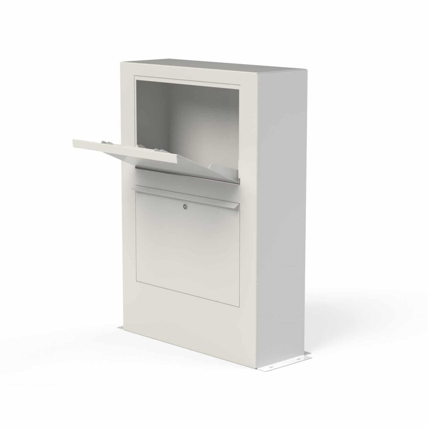 De pakketbrievenbus Flevoland van TuinExtra is gemaakt van 3 mm staal. Deze pakketbrievenbus is leverbaar in wit, zilvergrijs en antracietgrijs. De inwerpopening bevindt zich aan de voorzijde, de postbode kan de bovenste klep openen en een pakket inwerpen. Het pakket valt dan naar beneden en is niet meer uit de brievenbus te halen van buitenaf. De klant opent het slot van de onderste deur en neem het pakket en/of de post uit. De brievenbus is 125 cm hoog, 87 cm breed en 30 cm diep. Aan de onderzijde zit een strip voor eenvoudige bevestiging op een grondanker of betonvoet. Uiteraard voldoet deze brievenbus aan de normen van TNT post. De brievenbus kan in de gehele Benelux bezorgd worden. Een kwaliteitsproduct voor jaren. Een los huisnummer is als optie leverbaar. Er is ook een soortgelijk model brievenbus leverbaar in roestig cortenstaal.