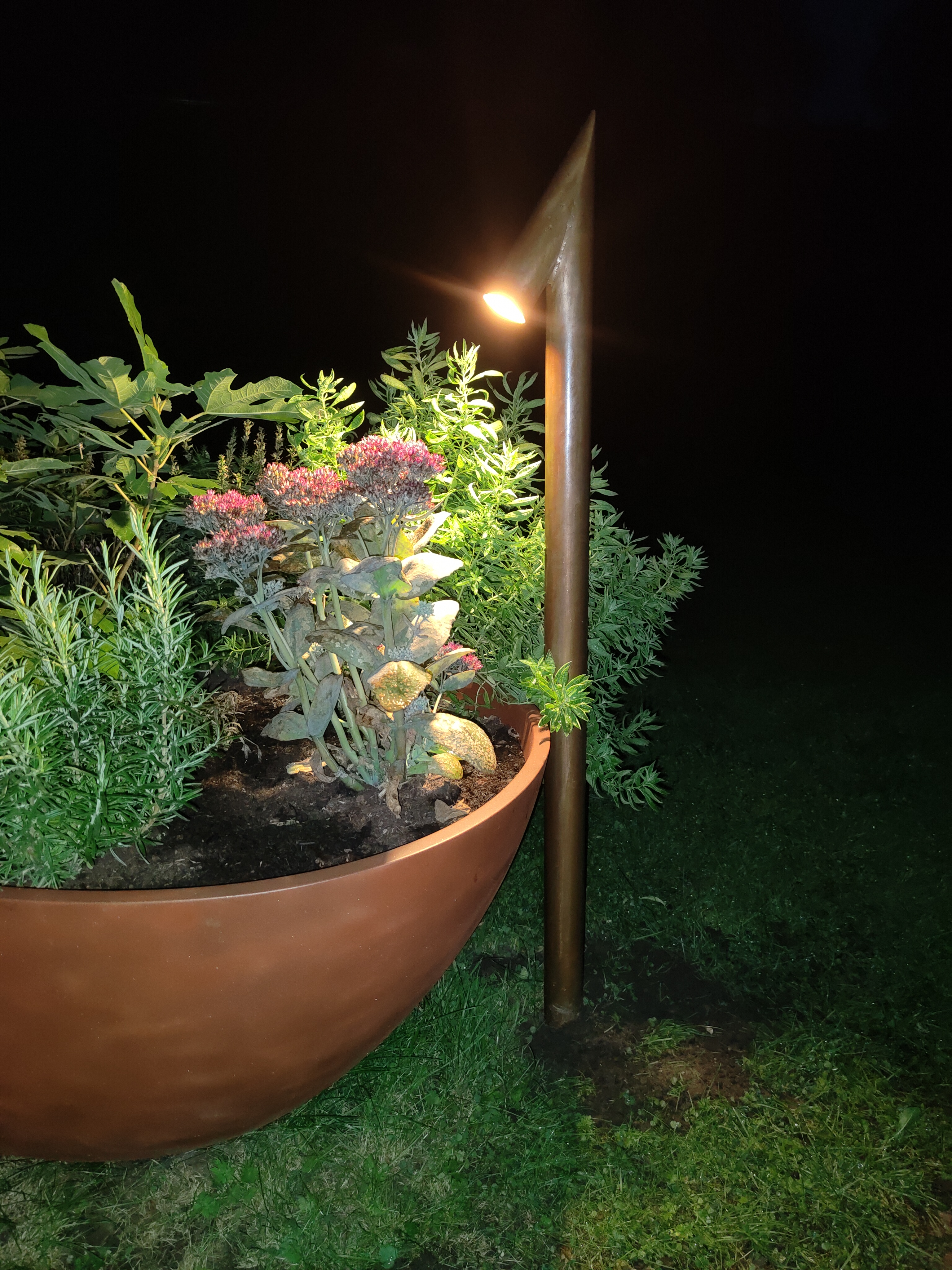 De buitenlamp Brussel is een buitenlamp gemaakt van massief koper. Het koper zal door de luchtvochtigheid een oxidatie in een donkerbruine kleur krijgen. Dit proces duurt enkele maanden. Het armatuur is er in 3 hoogtes, 52 cm, 116 cm en 242 cm. Deze buitenlamp is 116 cm hoog. De fitting is een GU10 fitting geschikt voor vele soorten ledlampen. In combinatie met een ledlamp met een lichtbundel van 120 graden breed krijgt dit armatuur een mooie brede lichtuitstraling. Dat maakt de buitenlamp Brussel uitermate geschikt voor het aanlichten van een pad of oprit in uw tuin. U kunt dus naar wens kiezen voor een brede lichtbundel of een smallere lichtbundel. De fabrieksgarantie is 5 jaar. Uiteraard kunt u de buitenlamp Brussel ook bekijken in onze showroom in Kaatsheuvel.