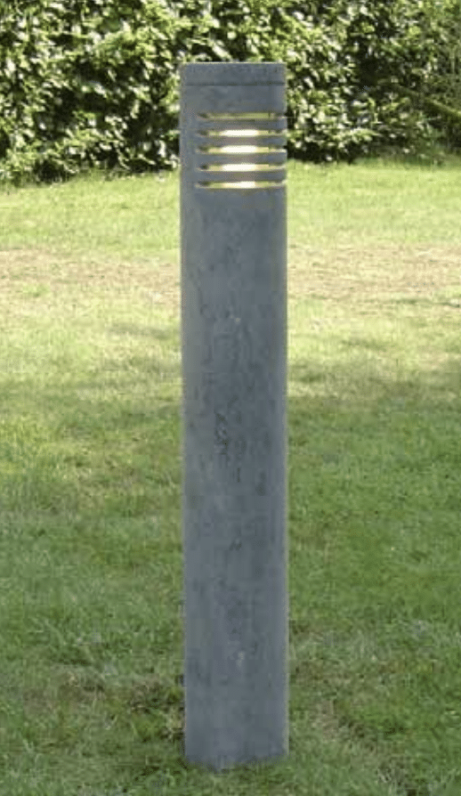 De buitenlamp r65l is gemaakt van Arduinsteen. Arduinsteen is een soort hardsteen met een blauw-grijze kleur. Het hardsteen is gedurende vele duizenden jaren gevormd door het samenpersen van plantenresten onder de grond. Deze plantenresten zijn soms nog zichtbaar in het arduinsteen. De buitenverlichting van arduinsteen is voorzien van een elektrische unit met een E27 fitting. U kunt vele modellen spaarlampen en led-lampen gebruiken in de arduinstenen buitenverlichting. Voor de grondverankering heeft u de keuze uit een rvs bodemplaat voor de bevestiging op een terras of bestrating of een aluminium buis welke ca 10 cm in het armatuur schuift en met de overige ca 40 cm in de grond of aarde bevestigd wordt. De r65l is 65 cm hoog en 10 x 10 cm breed. U kunt deze buitenlamp in onze showroom bezichtigen of direct bestellen in de webshop.