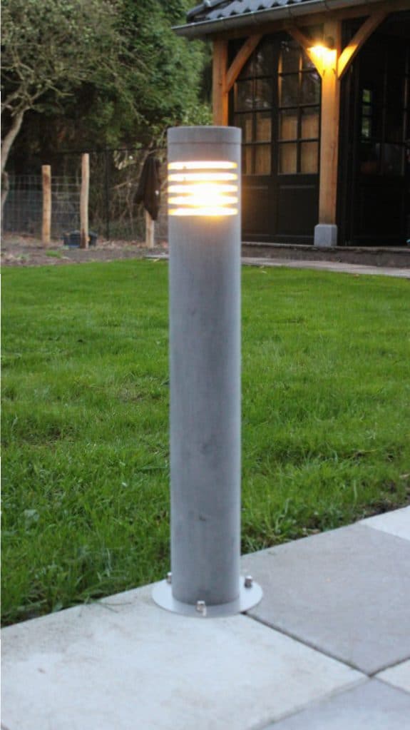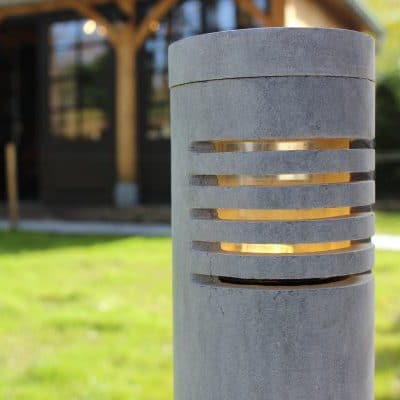 De buitenlamp r65l is gemaakt van Arduinsteen. Arduinsteen is een soort hardsteen met een blauw-grijze kleur. Het hardsteen is gedurende vele duizenden jaren gevormd door het samenpersen van plantenresten onder de grond. Deze plantenresten zijn soms nog zichtbaar in het arduinsteen. De buitenverlichting van arduinsteen is voorzien van een elektrische unit met een E27 fitting. U kunt vele modellen spaarlampen en led-lampen gebruiken in de arduinstenen buitenverlichting. Voor de grondverankering heeft u de keuze uit een rvs bodemplaat voor de bevestiging op een terras of bestrating of een aluminium buis welke ca 10 cm in het armatuur schuift en met de overige ca 40 cm in de grond of aarde bevestigd wordt. De r65l is rond en 65 cm hoog en 10 cm breed. U kunt deze buitenlamp in onze showroom bezichtigen of direct bestellen in de webshop.