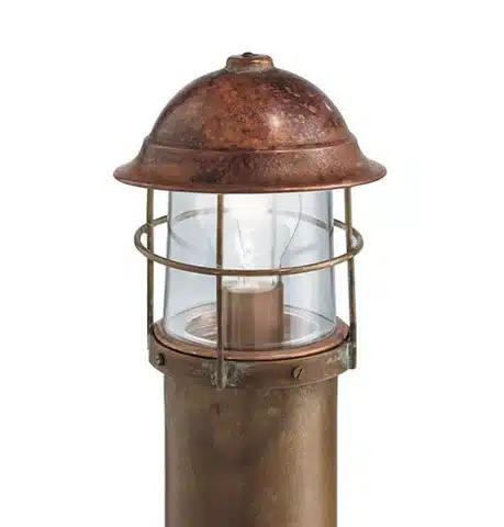 De koperen armaturen Garden van Il Fanale hebben een fraaie authentieke uitstraling. Er zijn vele modellen staande armaturen beschikbaar, met 4 verschillende lichtvensters. U kunt bij een buitenlamp van Il Fanale kiezen voor een transparante of een opaal witte beglazing. Dit is de Garden 245.43.ort met een hoogte van 66 cm. De armaturen zijn gemaakt van koper en messing wat al verouderd is bij de fabricage van het armatuur. Zo heeft u direct fraaie klassieke buitenverlichting met een nostalgische uitstraling.