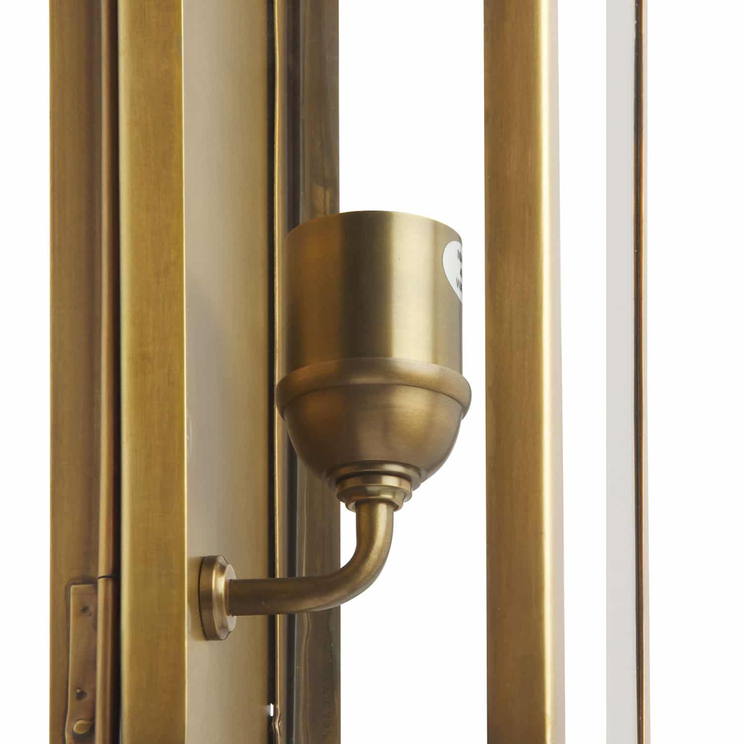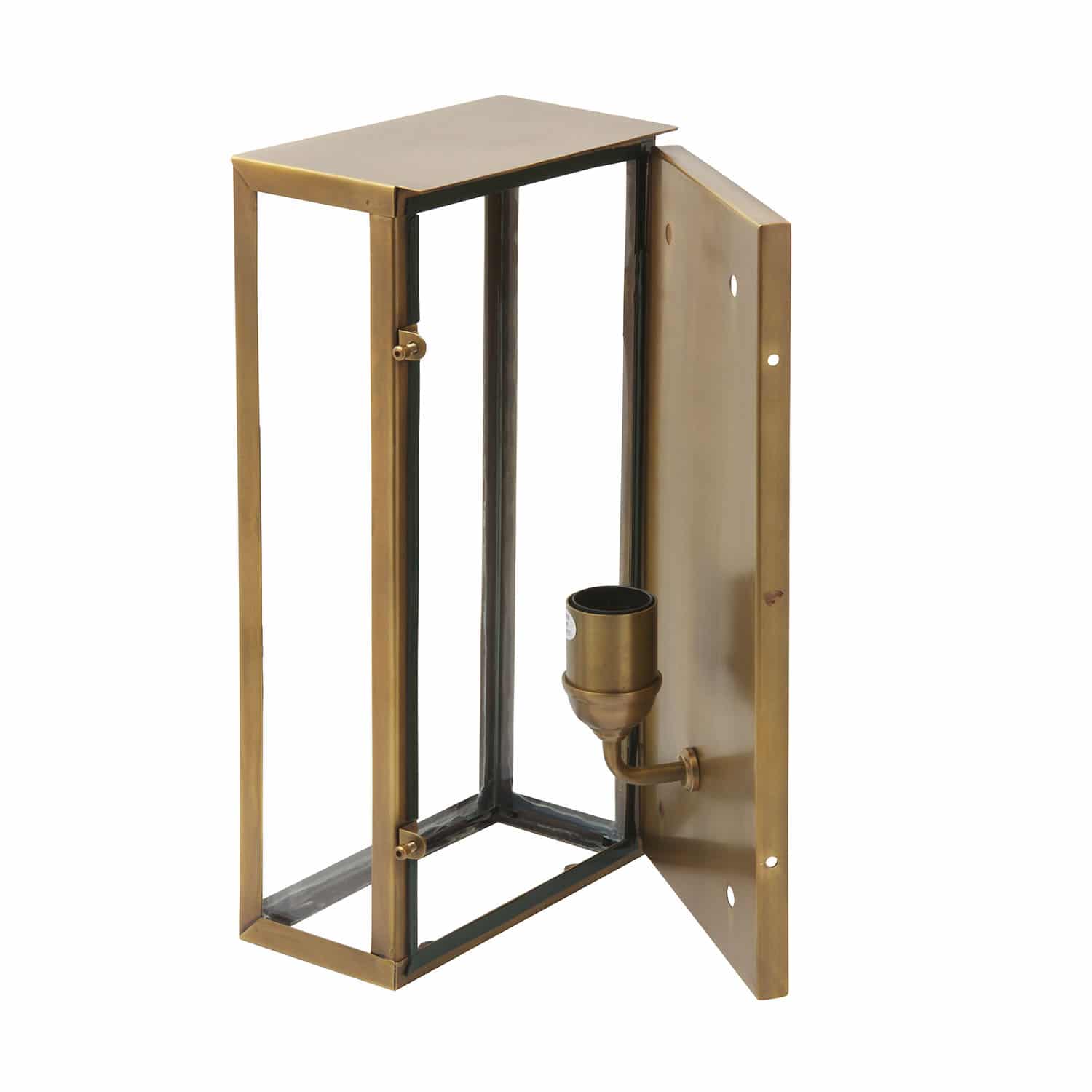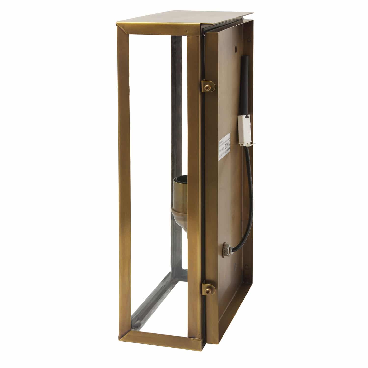 Deze stoere industriële buitenlamp Biarritz brons finish is gemaakt van messing en heeft een verouderde messing finish. De ip-waarde is IP54. De lamp is 40 cm hoog en 20 cm breed. De uitsteek uit de muur is 12 cm. De buitenlamp heeft een E27 fitting geschikt voor vele ledlampen. De wandlamp Biarritz is is ook leverbaar in brons en zwarte finish. De Biarritz is veelal uit voorraad leverbaar, indien niet voorradig is de levertijd ca 1 week.