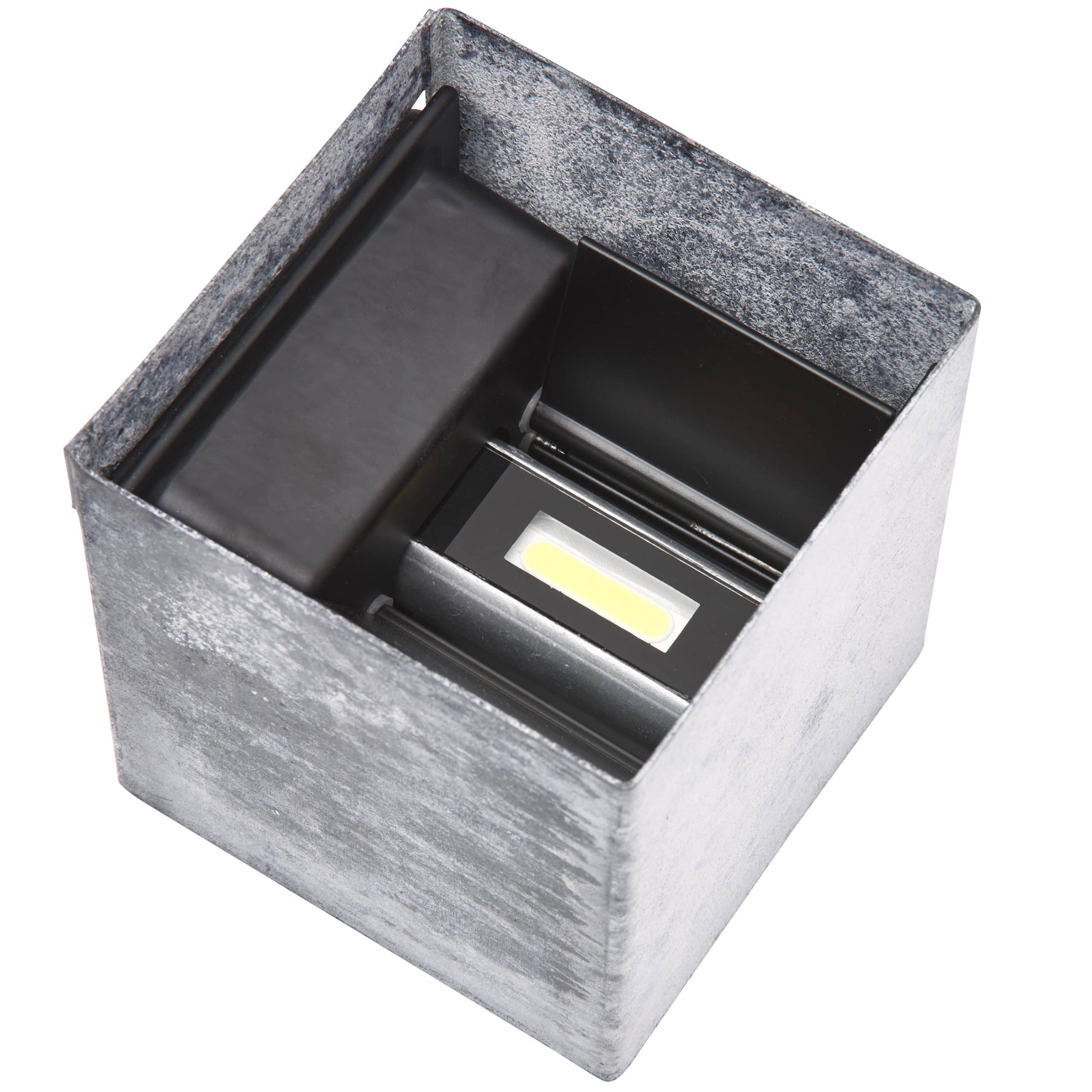 De Duo wandlamp is een buitenlamp gemaakt van aluminium. De poedercoating is zwart. Het kapje is gemaakt van verouderd zink. De wandlamp Duo is voorzien van een warmwitte led lichtbron van 5 watt. De led lichtbron is afgegoten zodat het geheel waterdicht is. De Duo wandlamp geeft zowel naar beneden als naar boven licht. De afmeting is 10 x 10 x 10 cm. Het unieke aan deze wandlamp zijn de flapjes waarmee de breedte van de lichtbundel instelbaar is. U kunt  dus naar wens kiezen voor een brede lichtbundel of een smallere lichtbundel. De fabrieksgarantie is 5 jaar.