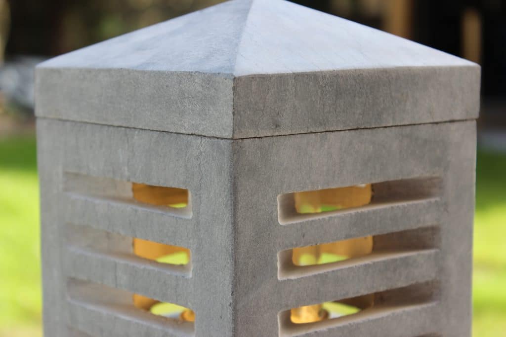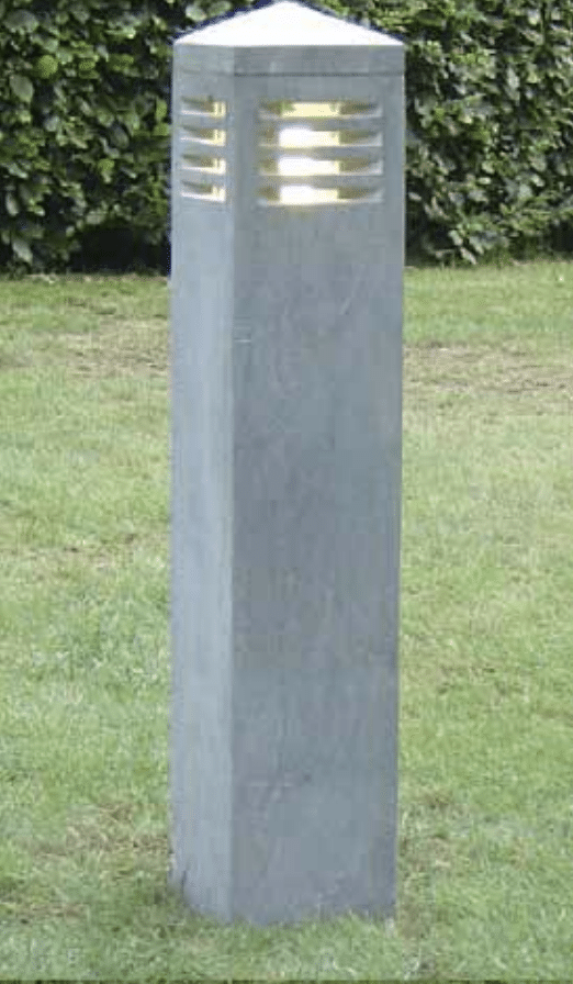De buitenlamp v68xl is gemaakt van Arduinsteen. Arduinsteen is een soort hardsteen met een blauw-grijze kleur. Het hardsteen is gedurende vele duizenden jaren gevormd door het samenpersen van plantenresten onder de grond. Deze plantenresten zijn soms nog zichtbaar in het arduinsteen. De buitenverlichting van arduinsteen is voorzien van een elektrische unit met een E27 fitting. U kunt vele modellen spaarlampen en led-lampen gebruiken in de arduinstenen buitenverlichting. Voor de grondverankering heeft u de keuze uit een rvs bodemplaat voor de bevestiging op een terras of bestrating of een aluminium buis welke ca 10 cm in het armatuur schuift en met de overige ca 40 cm in de grond of aarde bevestigd wordt. De v68xl is 68 cm hoog en 13 x 13 cm breed. U kunt deze buitenlamp in onze showroom bezichtigen of direct bestellen in de webshop.
